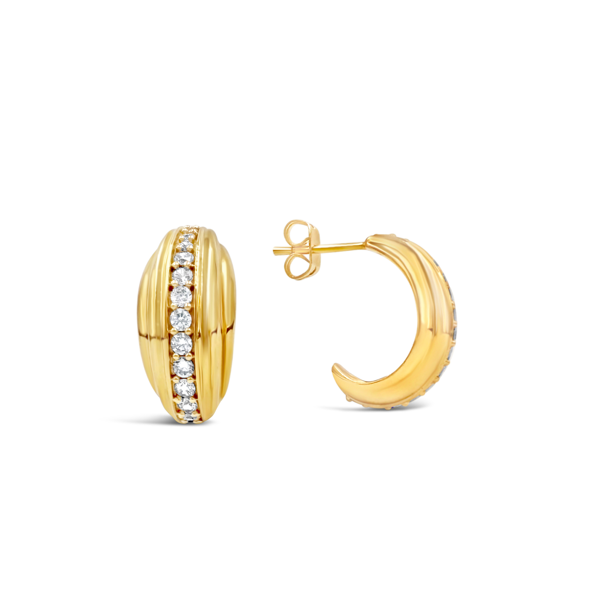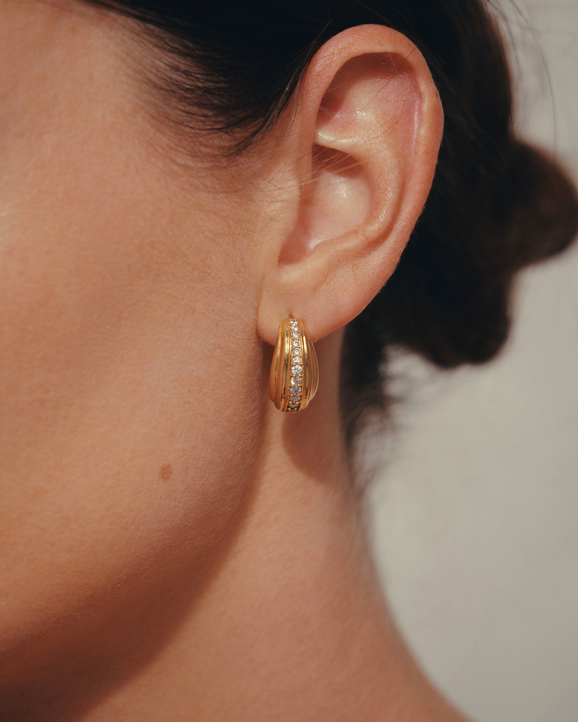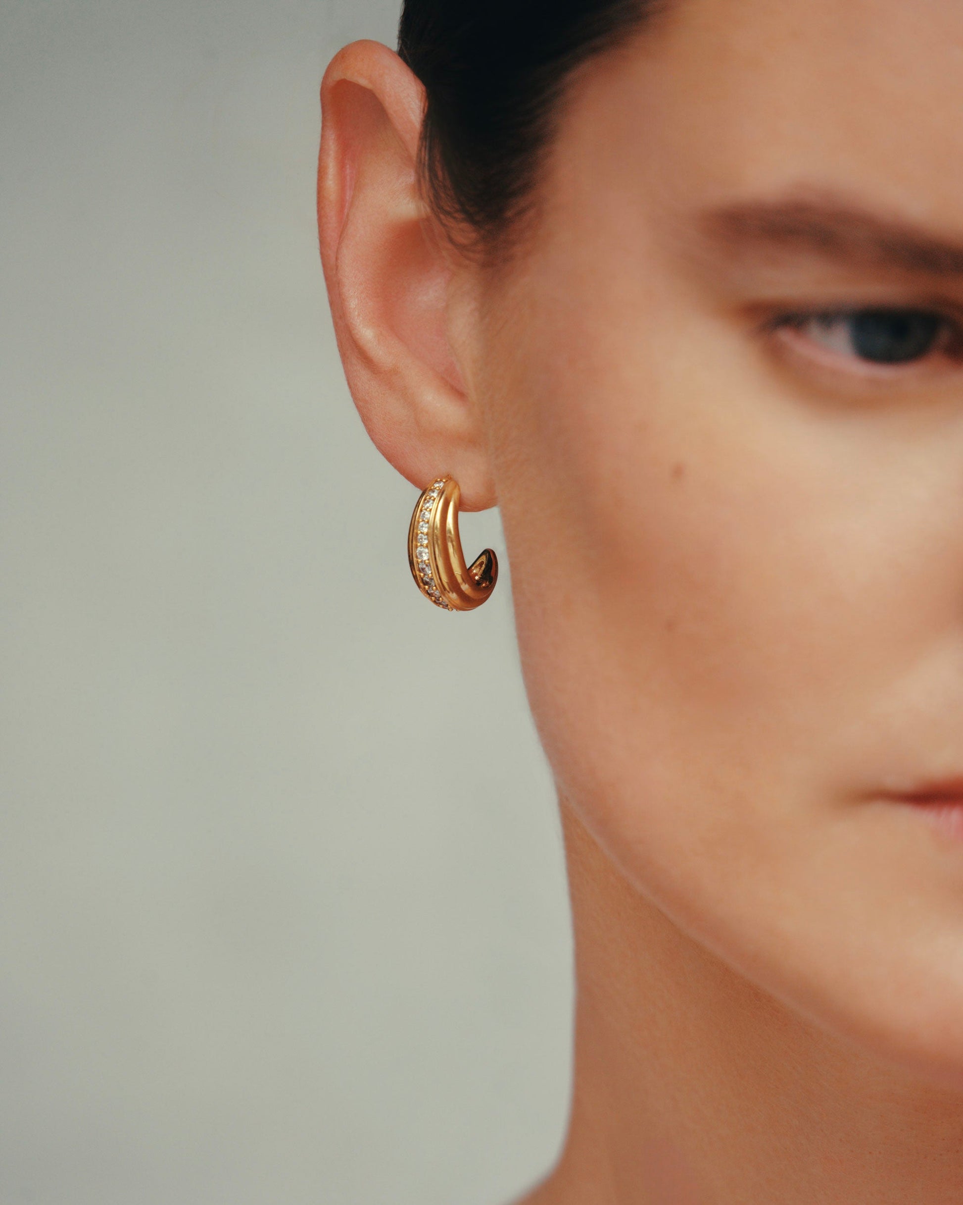 The lightweight Ella Earrings combine minimalist design with a touch of sparkle, making them an essential addition to your jewellery collection. Adorned with delicate brilliant zirconia stones.
